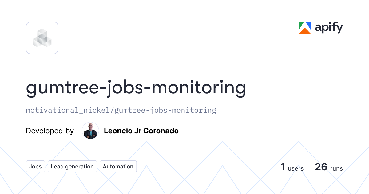 Gumtree Jobs MonitoringScrapes real-time Gumtree job listings including titles, metadata, salary, employer information, phone numbers, and supports Monitoring Mode with deduplication.https://apify.com/motivational_nickel/gumtree-jobs-monitoring